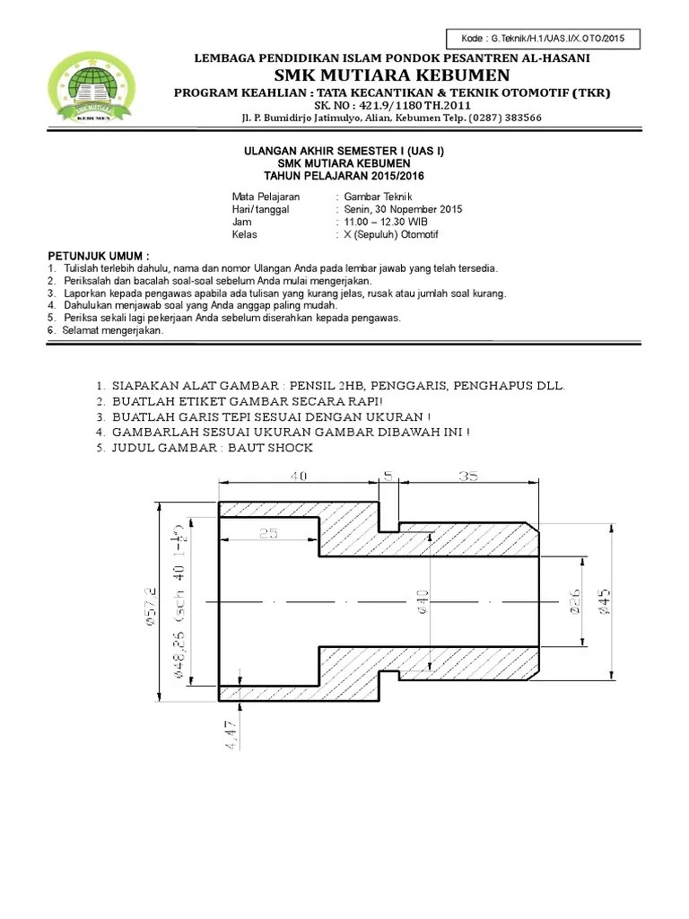 Pada kesempatan kali ini, admin telah membagikan latihan soal gambar teknik otomotif semester 1 kurikulum 2013. 5.untuk ukuran kertas a3, maka garis tepi sisi kiri adalah. Jenis gambar yang mengilustrasikan tentang teknik disebut…. Contoh soal uas gambar teknik smk kelas x semester 2. Soal gambar teknik kelas x tkr.